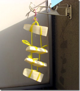 先ずは大根干しと言う事でやって見たが、上手に行かなかった。不恰好ではあるが何とか形になったのでベランダに吊るす事に。このまま1週間ほど干して見よう! 2007/11/28 開始、1.1Kg